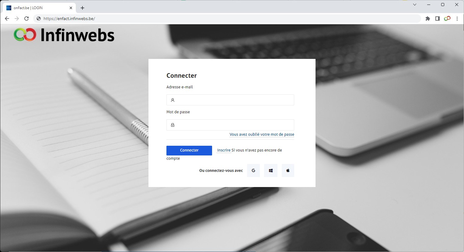 Pour comptables, nous proposons un portail de connexion dans leur propre style d'entreprise. Cela vous permet d'au lieu de diriger vos clients vers notre page générale [www.enfact.be](https://www.enfact.be) pour se connecter, ils peuvent se connecter en utilisant VOTRE propre URL personalisé : **enfact.(nom du cabinet comptable).be.** Lorsqu'un nouveau compte est créé pour un client, celui-ci reçoit le lien vers cette page avec l'image de votre bureau dans le couriel de bienvenue.&#x20;